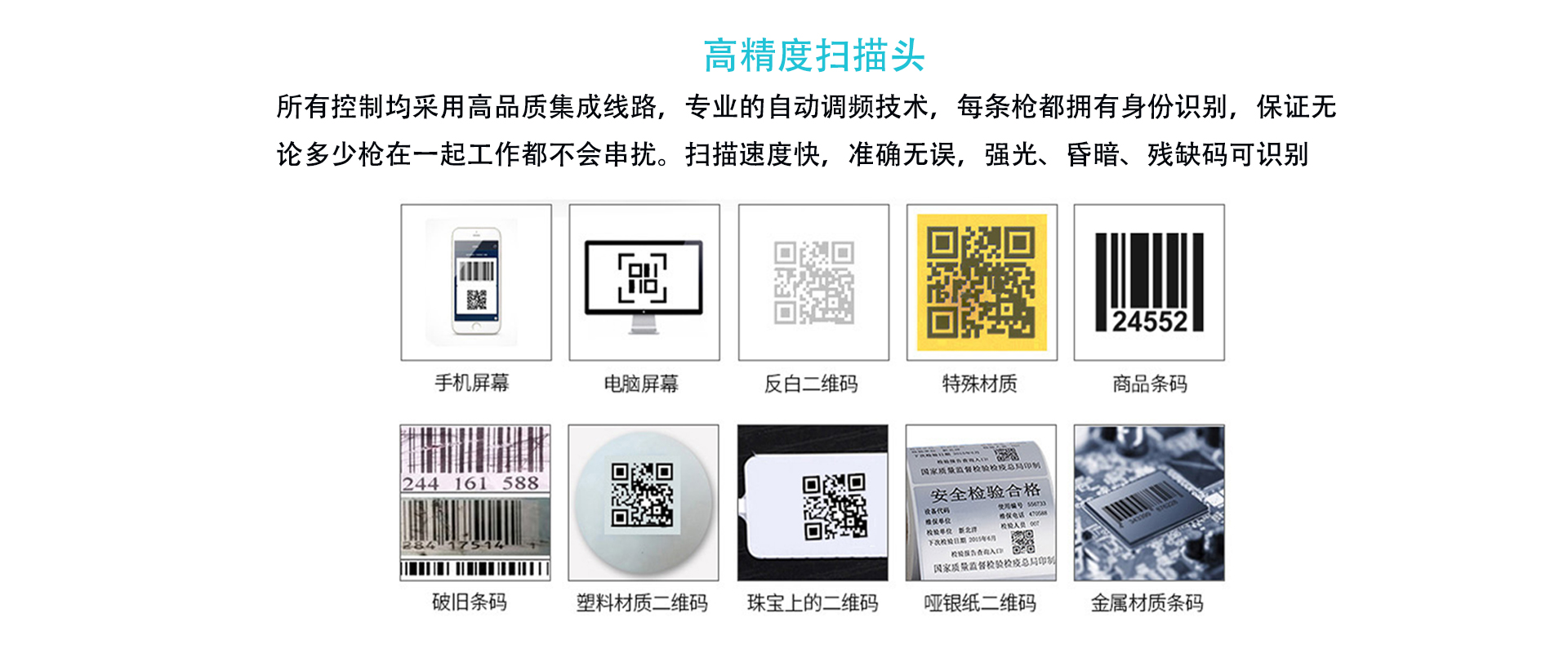 QR ,Micro QR,Data Matrix,PDF417 ,Micro PDF417,HANXIN, AZTEC 等