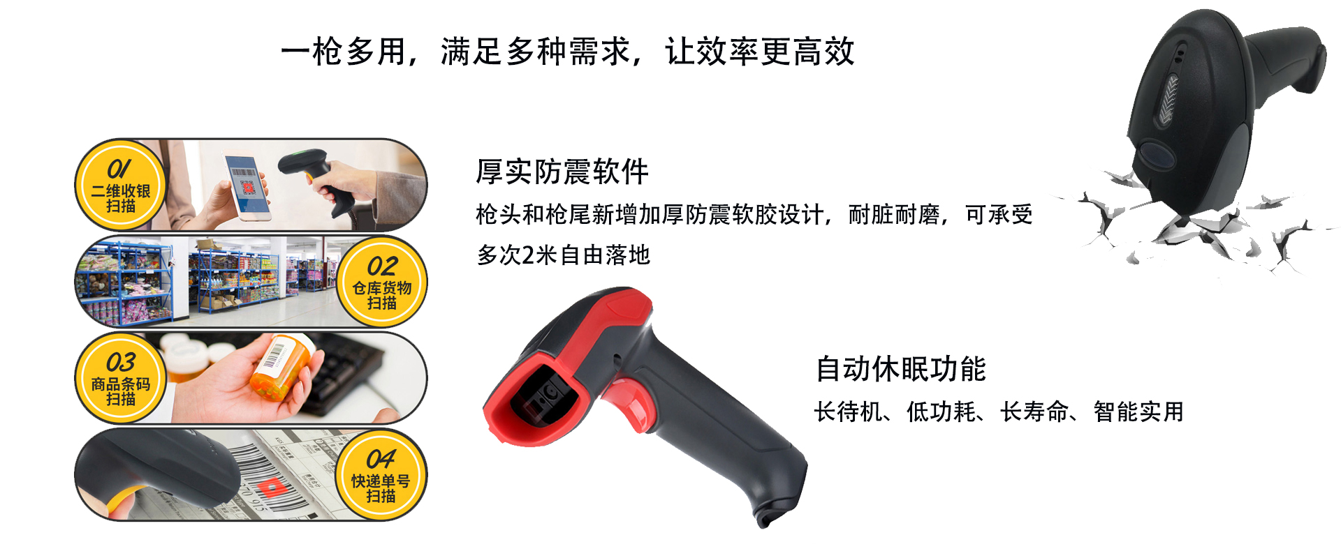 3、续航能力强。一次充电最多可扫描 3 万个条码,或者相当于一个星期的工作量。