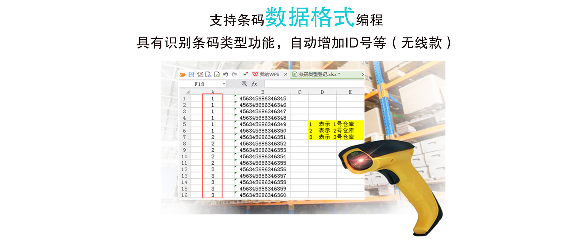 8.功能丰富:支持条码数据格式编程;识别条码类型功能;自动增加 ID 号